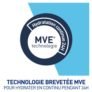 - La Technologie MVE® permet d’encapsuler les actifs et de les diffuser dans la peau en continu. Cela permet de restaurer la barrière cutanée et de l’hydrater tout au long de la journée après seulement une application.